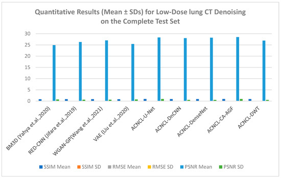 Quantitative Results (Mean ± SDs) Representation for Low-Dose CT lung Denoising on the Complete Test Set [9,15,17,19].
