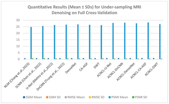 Quantitative results (Mean ± SDs) for under-sampling MRI denoising on full cross-validation.