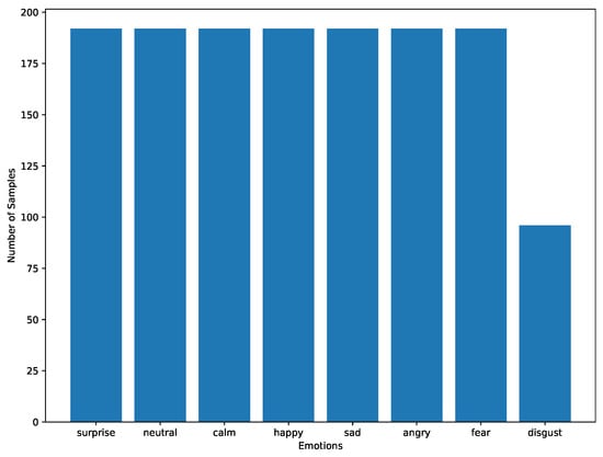 The publicly available Ryerson Audio-Visual Database of Emotional Speech and Song (RAVDESS) dataset was chosen for this research, as it provides a wide range of emotional expressions in both audio and video formats [3]. RAVDESS, collected between 2015 and 2018, includes 1440 audio files from 24 professional actors (12 male and 12 female) expressing eight emotions: neutral, calm, happy, sad, angry, fearful, disgust, and surprise. Each emotion is recorded at two intensity levels (normal and strong), except for neutral, enhancing its suitability for SER. Its advantages include high-quality recordings and balanced gender representation, though it is limited to English and controlled settings, potentially reducing real-world variability. For this study, only audio data were used, which were extracted by isolating the speech component from the multimodal dataset, ignoring video elements. Figure 1 shows samples for each class.