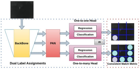 YOLO (You Only Look Once) models rely on a unified detection framework that predicts both bounding boxes and class probabilities through a single regression pass. The authors have extensive experience implementing the YOLO framework across diverse applications, which guided the design and optimization of the present study [33,34]. A key advantage of YOLO is its speed, enabling real-time detection using standard hardware. YOLO operates on global image features and performs object detection through the following main steps: