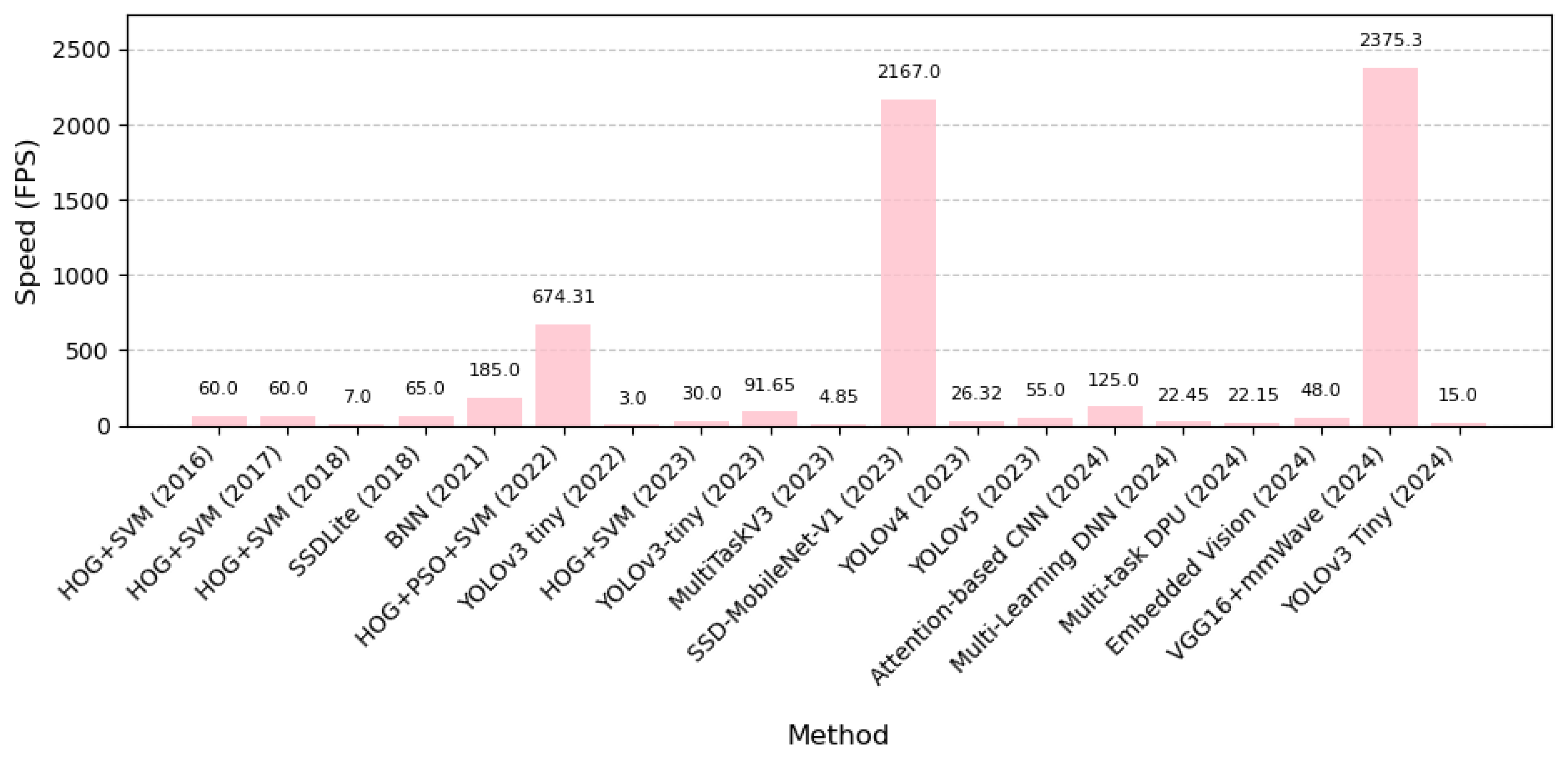 17]. In addition, Nazir et al. (2018) demonstrated the feasibility of traditional methods on low cost embedded platforms by implementing HOG and SVM on Raspberry Pi 3 and Odroid C2, achieving 5–7 fps for