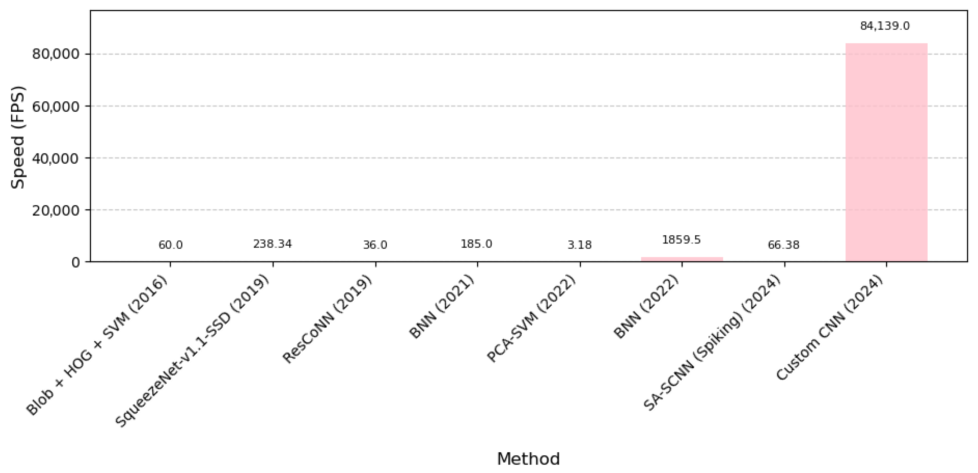 44]. Vaithianathan’s (2024) comprehensive framework demonstrates superior performance compared to conventional CPU and GPU implementations in terms of power efficiency, inference latency, and detection precision [