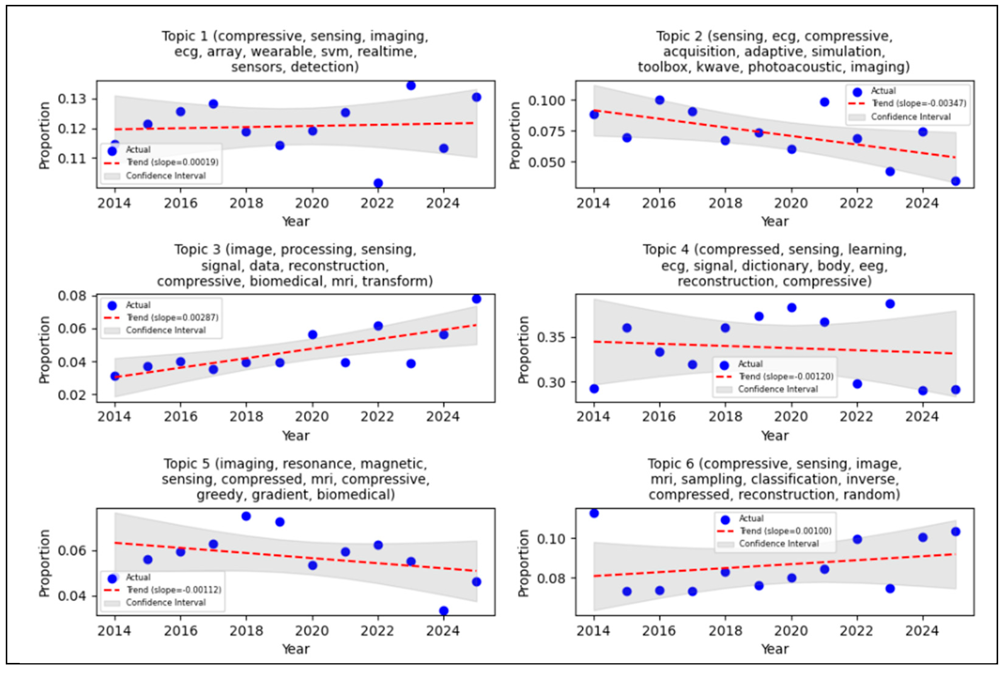 5 | imaging, resonance, magnetic, sensing, compressed, MRI, compressive, greedy, gradient, biomedical | ~5.5% | −0.00112 | ~(0.045–0.070) | Trending Down |
