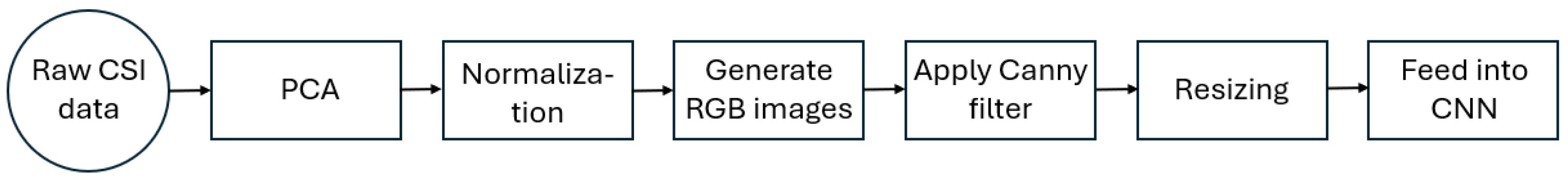- Shahverdi, H.; Moshiri, P.F.; Nabati, M.; Asvadi, R.; Ghorashi, S.A. A csi-based human activity recognition using canny edge detector. In Human Activity and Behavior Analysis; CRC Press: Boca Raton, FL, USA, 2024; pp. 67–82. [Google Scholar]