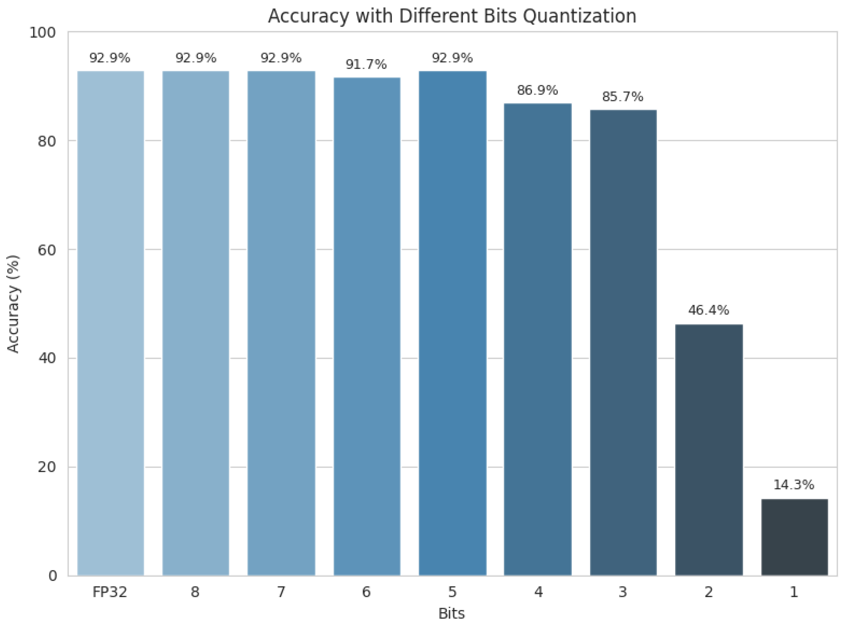 - Weights and activations (full quantization): Both parameters and intermediate values are quantized, which further reduces latency and memory requirements.