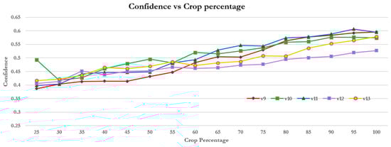 In this work, beyond the investigation of the effectiveness of the pre-processing technique, and particularly of the case of Cropping, we investigate how the percentage of Cropping in the imagery affects its detection confidence. In Figure 1 we observe the confidence vs Crop percentage of all models used in this research, while in Figure 2 it is provided an illustrative example on the Cropping of an image according to Crop percentage.
