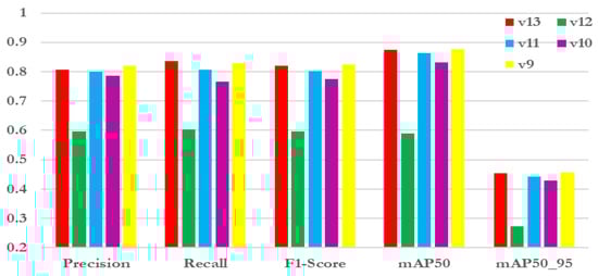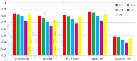 - A comparison of YOLOv9-tiny [], YOLOv10-nano [], YOLOv11-nano [],YOLOv12-nano [], and YOLOv13-nano [,] models trained and tested.