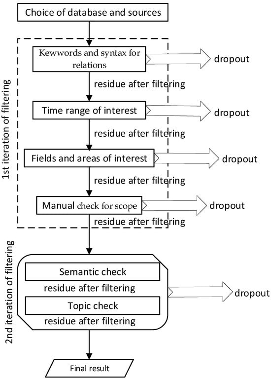 Figure 3 shows the steps performed in this research. There are two iterations of filtering the search results. Both iterations include steps, that is, applying filters in the search engine. These steps can be performed in any database and search engine.