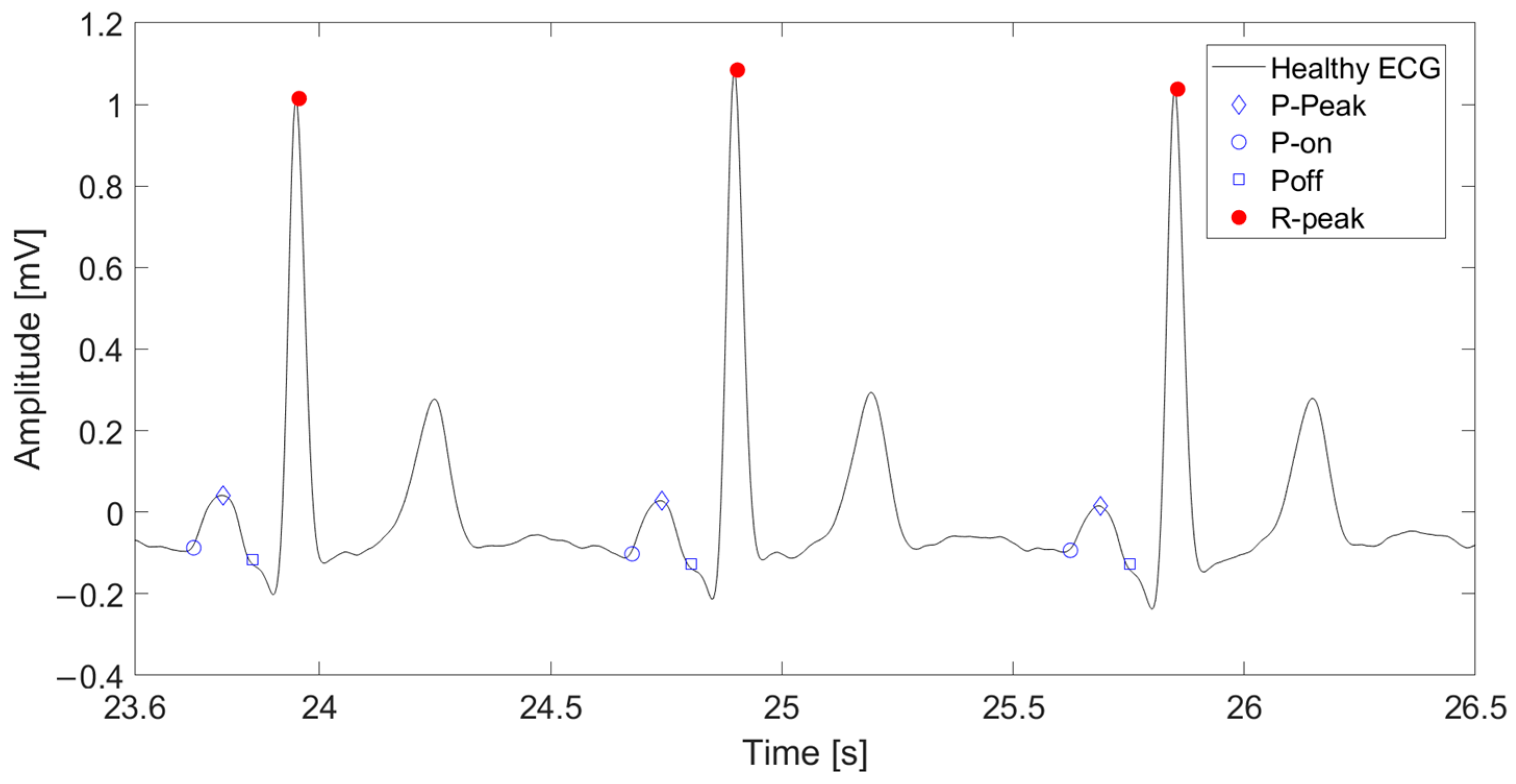 23]. In previous studies, several deterministic algorithms based on the analysis of the P wave have been proposed. While these approaches have demonstrated promising results, their performance metrics remain inferior to those achieved by the algorithm presented in our work. For example, a study conducted using the MIT-BIH Normal Sinus Rhythm [