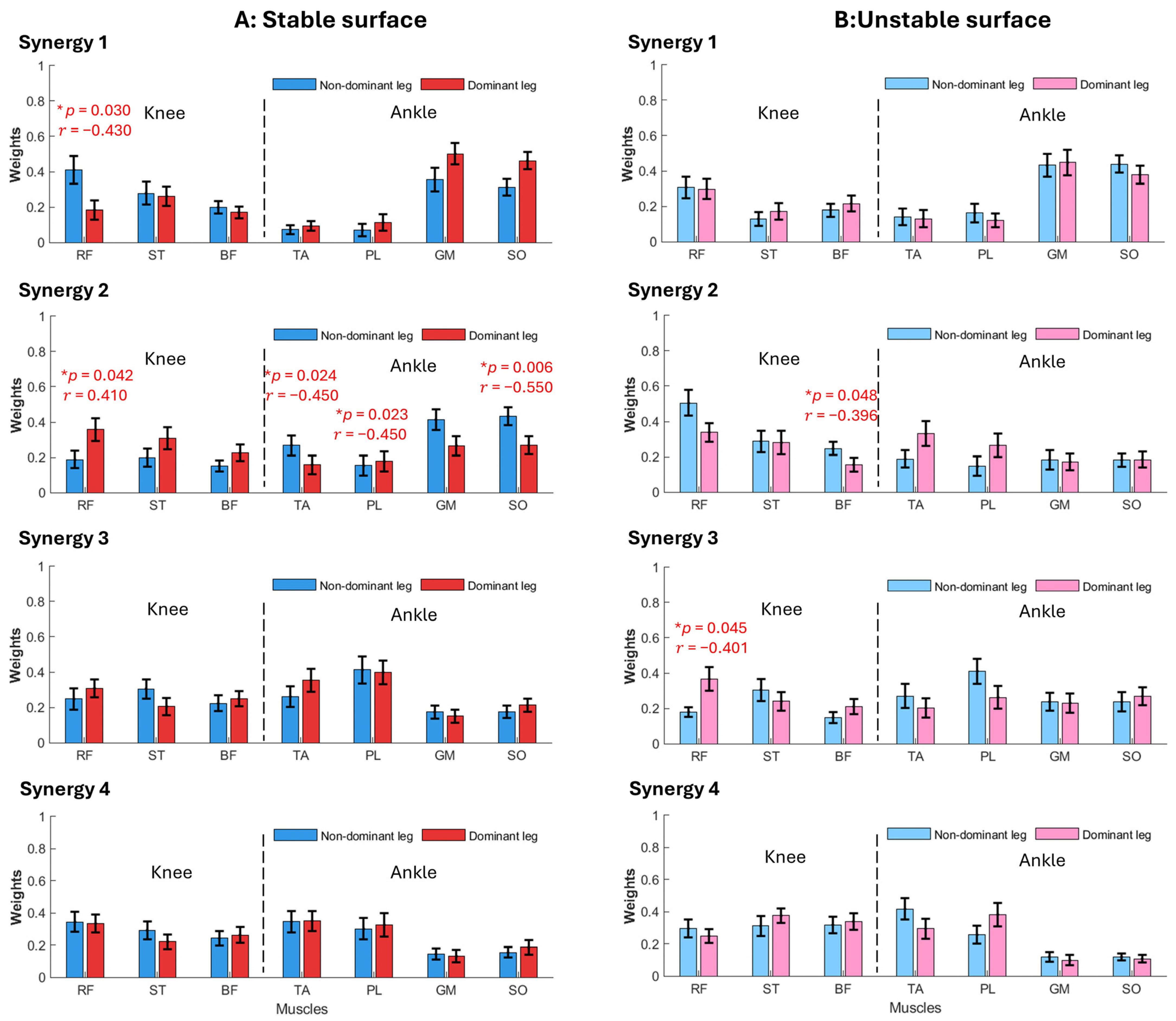 EMG-Based Muscle Synergy Analysis: Leg Dominance Effects During One-Leg Stance on Stable and Unstable Surfaces