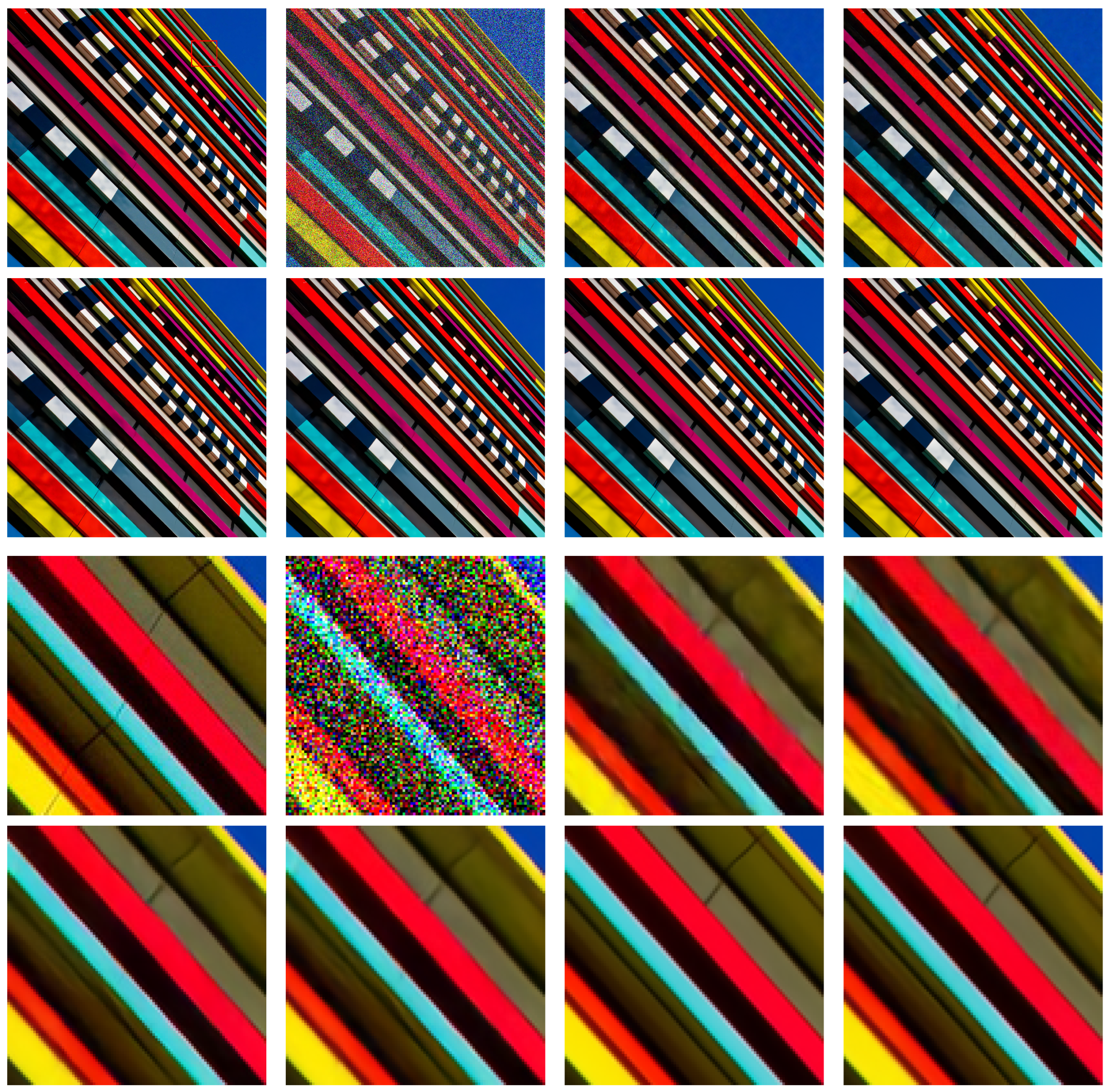 - Plotz, T.; Roth, S. Benchmarking denoising algorithms with real photographs. In IEEE Conference on Computer Vision and Pattern Recognition (CVPR), Honolulu, HI, USA, 21–26 July 2017; IEEE: Piscataway, NJ, USA, 2017; pp. 1586–1595. [Google Scholar] [CrossRef]