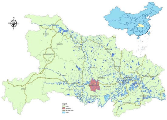 Location of Qianjiang in Hubei Province, China.
