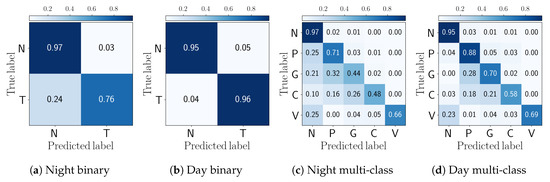 The binary classification decision can be made using a sequence of frames to improve the true positive detection rate. The true positive rate of an object detection within n frames can be calculated using Equation (12) which is based on a Bernoulli scheme. This equation allows finding the probability of an event A that the object has been detected on at least frames, which is more than half.
