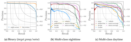 The classes of pedestrian, group of pedestrians (further referred as a group), cyclist and vehicle are expected in the frame of the street lighting systems. These classes can be also combined into a general target group class. Any other object, which does not belong to the classes of the target group, is treated as a class of noise. The general target group class is introduced for a binary classification between the target group and noise. The problem of false classification between classes of the target group is considered to be less significant than the target group/noise classification since all the classes of the target group are in need of illumination at nighttime.