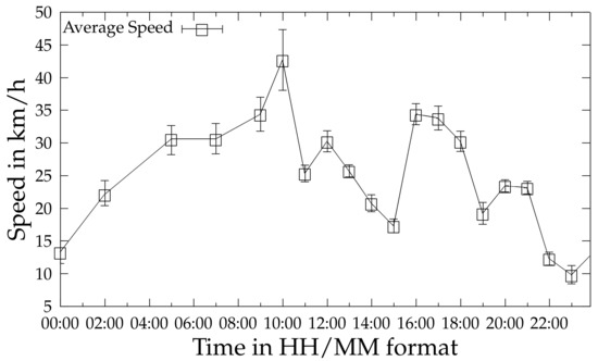In Figure 6 the average speed on hourly basis for the selected period is depicted calculated by this formula