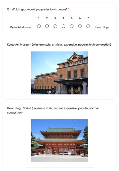 - Prepare several tourism spots with different characteristics, such as “Japaneseness" (natural style of Japan), naturalness, and crowdedness.