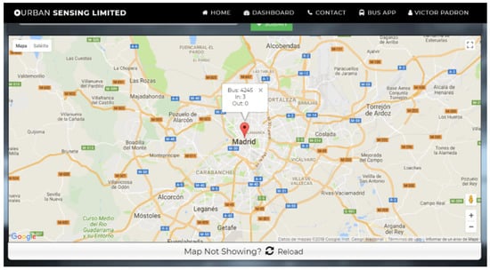 Though for this project, infrared systems and stereo cameras were studied, MUSA used simple video CCTV cameras from Retail Sensing, a Manchester company, and evaluated their performance in real-life conditions (Figure 6). The cameras, located on top of the front and rear doors, use artificial vision algorithms to count in and out passengers. This information was sent through a 4G router to an MQTT server to make it globally available.