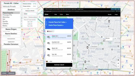 Another interesting service for elderly people (under development) is the possibility to use mobility service providers as Uber, Cabify or Free Now, without having the application or even having a smartphone (Figure 14). The private transport interface of the MUSA smart bus stop can check the availability of these services and order a trip using a dedicated account. The user will pay using cash, as this payment option is currently available in big cities.