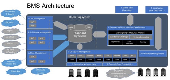 Figure 3). This means that every building is modeled against the same data model and all functionalities, user interfaces, and REST (Representational State Transfer) APIs (Application Programming Interfaces) are using the same model, which makes the BMS scalable and easy to operate.