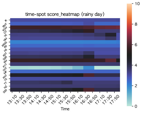 Score for each spot and time slot (rainy day).