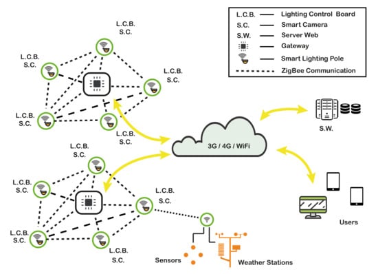 - Castro, M.; Jara, A.J.; Skarmeta, A.F. Smart lighting solutions for smart cities. In Proceedings of the 27th IEEE International Conference on Advanced Information Networking and Applications Workshops (WAINA), Barcelona, Spain, 25–28 March 2013; pp. 1374–1379. [Google Scholar]