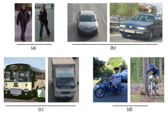 Example of basis set for moving object classification: pedestrians (a) and vehicles (cars (b), trucks (c) and bikes (d)).