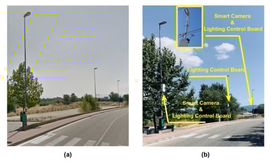 Experimentation site n.1: standard (a) and smart lighting system (b) configurations.