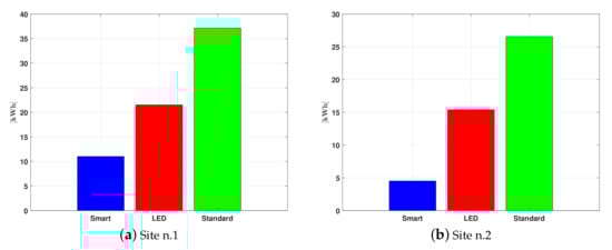 With reference to the consumptions reported in Table 3 and to the energy unit cost for Site n.1 (0.25 [/kWh]) and Site n.2 (0.22 [/kWh]), Table 5 reports a comparison of the energy annual costs for both the experimentation sites: