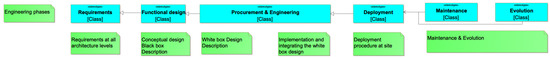 The proposed engineering flow through the architecture–engineering process matrix is depicted in Figure 11.