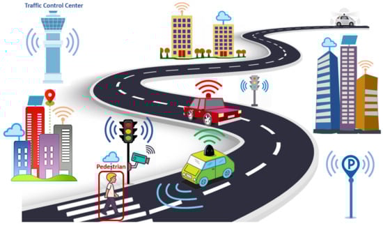 Figure 1 illustrates a sample smart city scenario where information is continuously shared among different units such as smart buildings, vehicles, and infrastructures to enable road vehicle automation and smart traffic control applications. In Figure 1 a sample of a smart city is illustrated. Information is continuously shared among different buildings, infrastructures, and vehicles. Thus, autonomously operating vehicles safely react to detected VRUs.