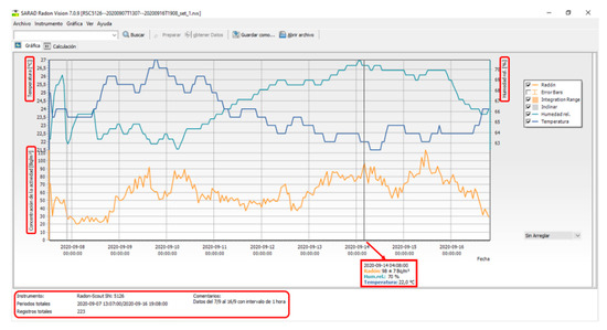 Therefore, Radon Vision 7.0.10 software has been used in combination with other serial port monitoring software to understand the information collected by the sensor. A screenshot of the sample analysis of the one-hour interval is attached in Figure 10 to visualise the front-end of the software Radon Vision 7.0.10.