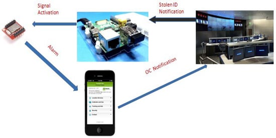 Specifically, the system proposed in [] uses a camera to take images of anyone trying to access a vehicle and compares them with images stored of the legal owner of this vehicle, in order to either allow or deny access to the vehicle. Other antitheft systems that have been proposed for motor vehicles or other mobile assets use locating units installed in vehicles (e.g., GPS (Global Positioning System)) for positioning purposes, microprocessors for data processing, GSM (Global System for Mobile Communications) or GPRS (Global Positioning Radio Satellite) units for data transmission, and batteries for power supply [,,,,].The question is whether the battery of such systems can be overcome, and, of course, it is directly dependent on the mobile provider. Another approach of antitheft technology, presented in [], is more complex because it uses face recognition. In [], a decentralized vehicle antitheft system using blockchain technology and smart contracts was proposed, aiming to improve the antitheft system’s safety and data security by using a proper key that reduces the possibility of leakage of personal information.