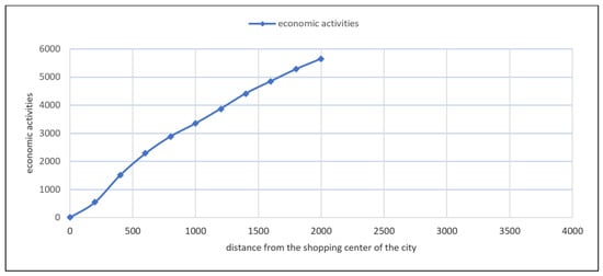 Number of economic activities and distance from the shopping center of the city. Source: Chamber of Magnesia, Own editing.