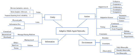 The first step for designing an adaptive multi-agent network is to define the key features and requirements of the system. These systems can be identified based on the characteristics of their entities, operations and actions, information flow, and the external environment that they operate in [8]. Summary of the influencing factors in defining MASs is presented in Figure 3.