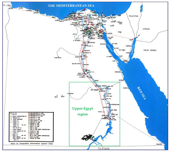 - Abdalla, O.H.; Ghany, A.M.A.; Fayek, H.H. Development of a digital model of the Egyptian power grid for steady-state and transient studies. In Proceedings of the 11th International Conference on Electrical Engineering (ICEENG-11), Cairo, Egypt, 3–5 April 2018. Paper No 83-EPS. [Google Scholar]