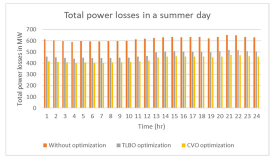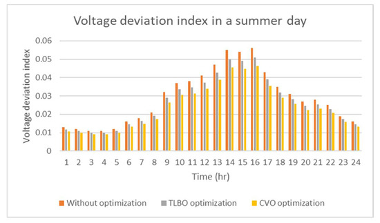 Total power losses and voltage deviation index in a summer day.
