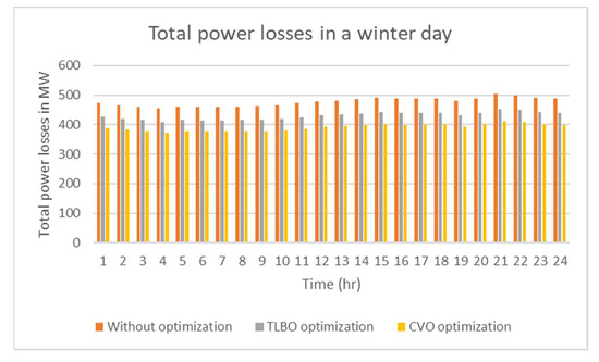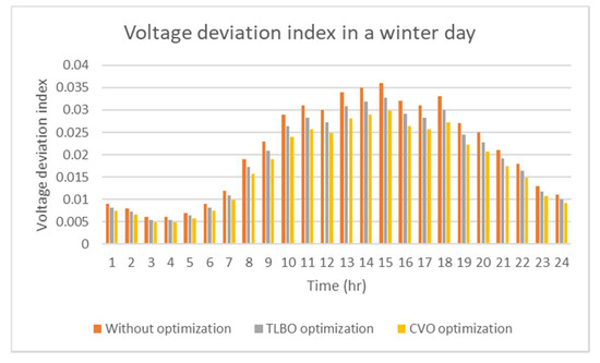 Total power losses and voltage deviation index in a winter day.