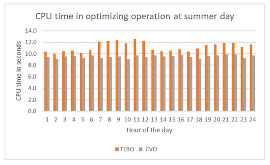 CPU time in the operation of TLBO and CVO at each hour of a summer day.