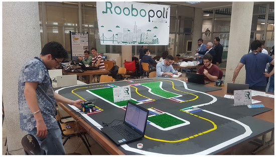 Roobopoli (Roobopoli website: http://www.roobopoli.org accessed on 20 January 2022) is an educational project that aims to make learners familiarise with smart cities and autonomous vehicles. It is designed by the Perlatecnica (Perlatecnica website: http://www.perlatecnica.it/ accessed on 20 January 2022) non-profit association, with the technical support of the Bluenet company (Bluenet website: https://bluenetita.com accessed on 20 January 2022).