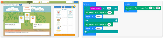The concept of smart objects is often difficult to be grasped by people not directly involved in the field, let alone children. Designing smart objects is usually a task reserved for experts with a background in electronics and low-level programming, e.g., [54]. This situation changed in the latest years, thanks to physical computing and microelectronic devices, such as Arduino, or specifically designed devices for children like Micro:bit [55,56]. Such devices make the design of smart objects possible for non-experts, such as children, as they facilitate micro-controller programming and standardise electronic assembly techniques.