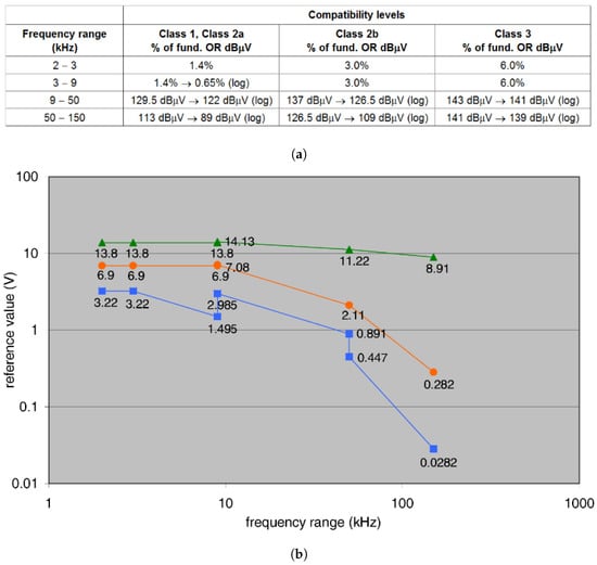 - IEC 61000-2-2; Electromagnetic Compatibility (EMC)—Part 2-2: Environmen—Compatibility Levels for Low-Frequency Conducted Disturbances and Signalling in Public Low-Voltage Power Supply Systems. IEC: Geneva, Switzerland, 2019.