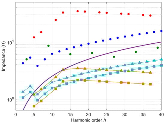 - Stiegler, R.; Meyer, J.; Schori, S.; Höckel, M.; Scheida, K.; Drápela, J.; Hanžlík, T. Survey of network impedance in the frequency range 2–9 kHz in public low voltage networks in AT/CH/CZ/GE. In Proceedings of the 25th International Conference and Exhibition on Electricity Distribution (CIRED), Madrid, Spain, 3–6 June 2019. [Google Scholar]