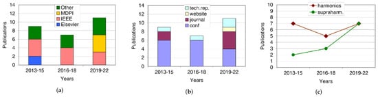 - The influence of low-frequency harmonic distortion on higher-frequency emissions, such as in the supraharmonic range. Such influence was observed for various types of converters, where, in general, supraharmonic emissions depend on both the AC supply voltage level and low-order distortion (affecting the local wave shape and thus high-frequency emissions localized along the fundamental waveform). This is discussed further in Section 4;