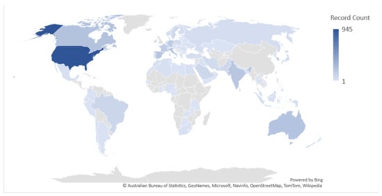 An analysis of the number of publications on the theme of Smart Urban Mobility, revealed the countries with the most contributions (illustrated in Figure 6), highlighting that China ranks first, with the United States and England coming up second and third, respectively. Other countries with high publication outputs are Italy, France, Australia, Spain, India, Canada, South Korea and Singapore. This adds weight to the notion that countries experiencing high urbanization rates, and its associated transportation challenges, are contributing more to the theme.