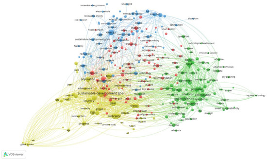 A further step in the bibliometric analysis was taken by incorporating an analysis of terms in the most relevant texts included when we entered “Smart City” and “Sustainable Development Goals” in the Web of Science (WoS) database, specifically in the Web of Science Core Collection. WoS was incorporated out to gain access to the two large databases and to derive three essential aspects, i.e.,