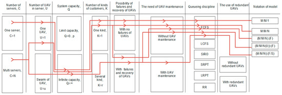 To provide a classification of queueing-theory-based models of UAVFaaDS, the following aspects are considered:
