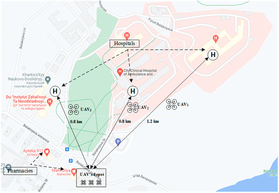- The cases of models’ application and calculating parameters and indicators of UAV fleets for delivery of medicines for normal and emergency modes. In these cases, the parameters, capacity and space locations of components of UAVFaaDS, and the practical experience of operational staff have been taken into consideration.