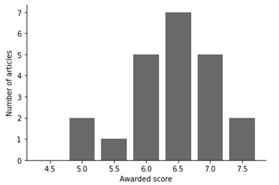 Quality score distribution of the selected articles.