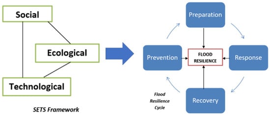 Against this background, this paper particularly examines the contribution of smart cities plan (especially water smart city) to flood risk management based on the integration of SETS and the FRC (Flood Resilience Cycle) Framework, while addressing three key research questions: (i) What is the level of flood resilience based on SETS Framework? (ii) In what ways does the water smart city concept contribute towards enhancing flood resilience? (iii) What are the challenges of the current institutional arrangements for flood risk management? In recognition of the fact that the current strategies for facing floods mostly focus on structural methods and are less comprehensive [28,32], this research hopes to uncover new insights for enhancing flood risk reduction.