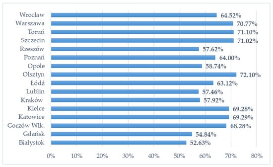| Szczecin | 74.76% | 70.46% | 67.82% | falling |